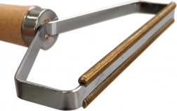 Der ergonomische Holzgriff sorgt für einen sicheren Halt, der Metallrahmen gewährleistet Langlebigkeit und Stabilität.