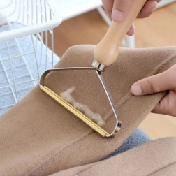 Die Metallkante sammelt effektiv Flusen, Haare und lose Fasern und hinterlässt den Stoff glatt und gepflegt.