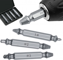 Der Satz von Schraubenentfernern ist ein hervorragendes Werkzeug sowohl ffcr professionelle Werkste4tten als auch ffcr Heimwerker. Seine Verwendung beschleunigt erheblich die Arbeit bei der Entfernung von beschädigten oder gebrochenen Schrauben. Bohren Sie ein Loch in die gebrochene Schraube und wählen Sie dann die geeignete Extraktorgröße. Die stabile Konstruktion aus Werkzeugstahl gewährleistet eine lange Lebensdauer jedes Werkzeugs.