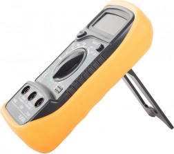 Das Multimeter ist mit einem Gummigehäuse und einem Ständer ausgestattet, um eine einfache und sichere Verwendung unter verschiedenen Arbeitsbedingungen zu gewährleisten.
