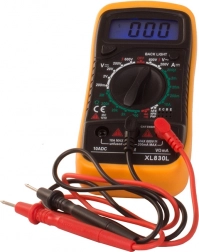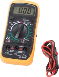 Das Multimeter XL830L ermöglicht die Messung von Gleich- und Wechselspannung sowie Stromstärke, einschließlich Dioden- und Transistortests.