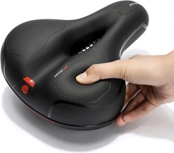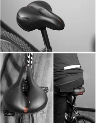 Der praktische reflektierende Streifen erhöht die Sichtbarkeit bei schlechten Lichtverhältnissen, und der beiliegende wasserfeste Bezug schützt den Sattel vor Regen. Robuste Materialien (PU-Leder, PP-Elemente und Stahlrahmen) sorgen für eine lange Lebensdauer und einen stabilen Sitz mit Unterstützung einer korrekten Körperhaltung.