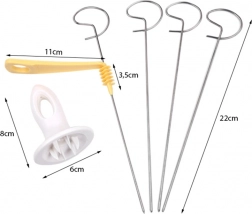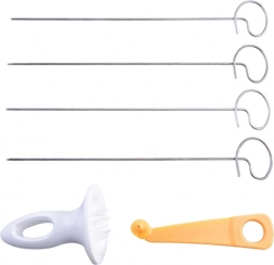 Im Lieferumfang sind 4 Spieße aus Edelstahl enthalten, die für festen Halt und gleichmäßiges Schneiden sorgen.