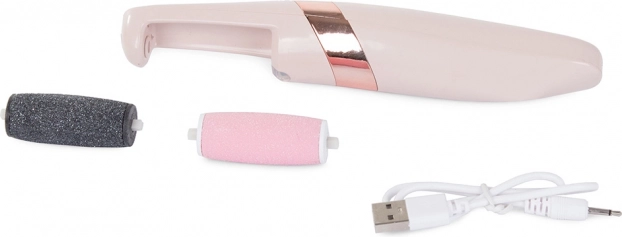 Um das Gerät vielseitig zu machen, enthält es zwei Walzen – eine Schleif- und eine Glättungswalze. Die Feile erfordert keine komplizierte Pflege, der Kopf ist leicht austauschbar, und das Gerät wird über ein USB-Kabel wieder aufgeladen.