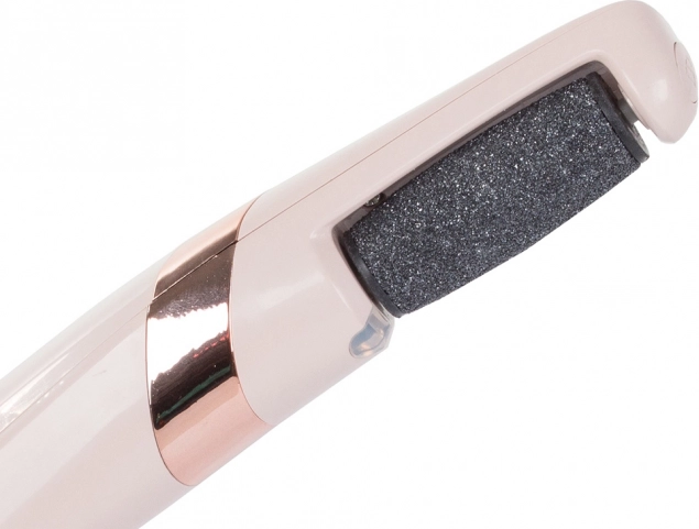 Das Gerät hat ein elegantes Design, das perfekt in der Hand liegt, und enthält Aufsätze zur Glättung der Füße. Für einfache Anwendung auch bei schlechten Lichtverhältnissen ist es mit einem LED-Licht ausgestattet.