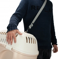 Tragen Sie die Transportbox bequem wie eine Umhängetasche – ideal für Spaziergänge, Reisen und den Tierarztbesuch.