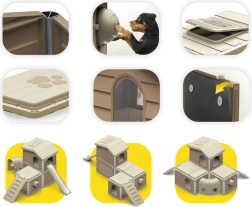 Das modulare System aus 6 Hauptteilen ermöglicht eine einfache Montage und Demontage ohne Werkzeug, wodurch das Häuschen ideal für Garten, Terrasse und zum Transport ist. Der interaktive Trockenfutterspender unterstützt langsameres und gesünderes Fressen und stimuliert auf spielerische Weise die natürlichen Instinkte von Hund oder Katze.