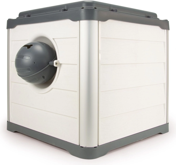 LOBOO SMARTKAVE CUBE ist ein praktisches, robustes und ästhetisches Häuschen für Hunde und Katzen mit Flachdach, das einen sicheren Platz zum Schlafen und Ausruhen bietet und gleichzeitig vor Witterung schützt. Seine Konstruktion kombiniert eloxiertes Aluminium und mit Naturfasern aus Mandelschalen verstärkten Kunststoff, was für Langlebigkeit und Umweltfreundlichkeit sorgt.