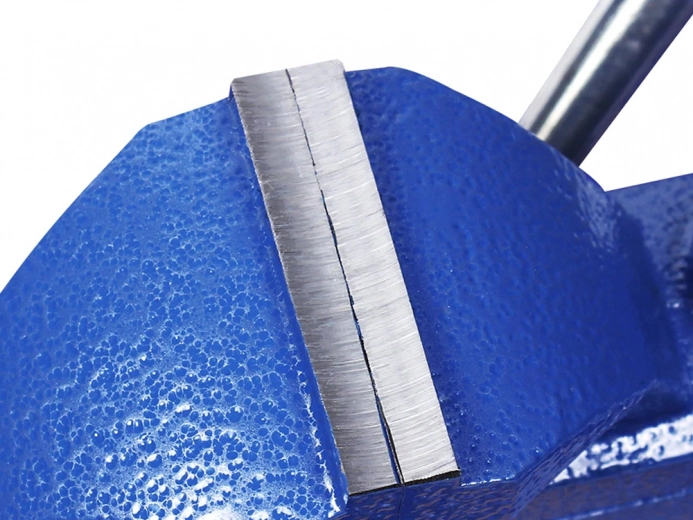 Das Spannsystem mit breiter Schraube und Druckplatte gewährleistet eine feste Befestigung an der Arbeitsplatte (empfohlen für Stärken bis ca. 55 mm). Dank der robusten Ausführung und hochwertigen Backen eignet sich der Schraubstock für Arbeiten mit Metall und anderen Materialien – sowohl in der Heimwerkstatt als auch im professionellen Einsatz.