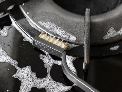 Der kompakte Bürstenkopf und die festen Borsten gelangen in Fugen, Nuten und Ecken – ideal für Kochfelder, Armaturen, Werkzeuge oder Autoteile.