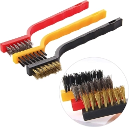 Dieses praktische Set aus drei Drahtbürsten kombiniert unterschiedliche Borstentypen für maximale Vielseitigkeit bei der Reinigung. Die Stahlbürste entfernt aggressiv Rost und alte Anstriche, die Messingbürste ist schonend zu Nichteisenmetallen und empfindlicheren Oberflächen, und die Nylonbürste eignet sich für feine Reinigung, Mattierung sowie Arbeiten an schwer zugänglichen Stellen.