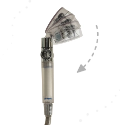 Der Duschkopf kann um 360 Grad gedreht werden, was seine Verwendung und Reinigung erleichtert.