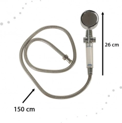 Ob Sie eine Badewanne oder eine Dusche haben, dieser Duschkopf ist ein unverzichtbares Accessoire für Ihr Badezimmer. Die eingebaute Turbine und die Vielzahl kleiner Löcher sorgen für eine hervorragende Kontrolle über den Wasserdruck und sparen Wasser und Ihr Geld. Dank der seitlichen Regulierung des Wasserstroms können Sie den Fluss leicht an Ihre Bedürfnisse anpassen. Das Set enthält auch einen Duschschlauch und eine Halterung zur einfachen Befestigung an der Wand. Die Länge des Schlauchs ermöglicht eine komfortable Nutzung, sei es bei der Körperpflege oder der Reinigung der Dusche.