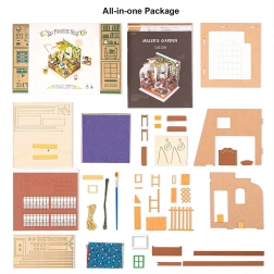 Entdecken Sie den Zauber detailreicher Miniaturen mit dem DIY-Bausatz RoboTime – Gartenterrasse. Genießen Sie kreative Entspannung beim Zusammenbau und erhalten Sie eine Dekoration, die Ihrem Interieur eine gemütliche Atmosphäre verleiht. Enthalten sind LED-Beleuchtung mit Batterien, ein komplettes Set an Werkzeugen und Materialien sowie eine detaillierte Anleitung – Sie brauchen nur noch eine Schere und können loslegen.