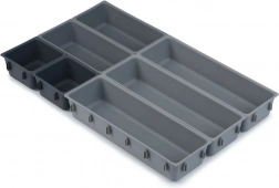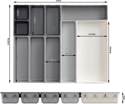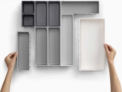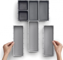 Das Set aus 10 miteinander verbindbaren Schalen mit Haken ermöglicht es Ihnen, die Schublade exakt nach Maß zu gestalten und jedes Utensil an seinem Platz zu haben.