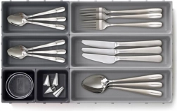 Behalten Sie in Ihrer Küche perfekte Ordnung mit dem modularen Schubladen-Organizer-Set. Das Set aus 10 Behältern in Grau- und Weißtönen ermöglicht eine flexible Anordnung von Besteck, Küchenutensilien und Kleinteilen. Dank cleverer Haken lassen sie sich schnell verbinden, sind robust, leicht zu reinigen und platzsparend.