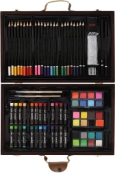 Dieses Kreativset ist die ideale Lösung für alle kleinen Künstler. Es enthält insgesamt 79 Teile grundlegender Malutensilien, die sorgfältig in einem praktischen Holzkoffer angeordnet sind.