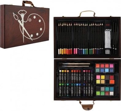 Der Holzkoffer voller Farben und Utensilien ist der perfekte Begleiter für junge Kreative. Er enthält alles, was Sie zum Malen und Zeichnen benötigen, in einer eleganten und leicht tragbaren Verpackung: