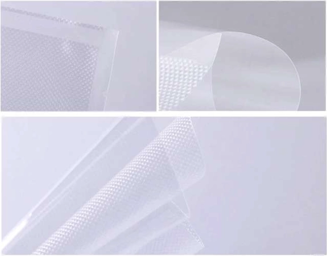Die Beutel haben eine glatte Seite zur Produktpräsentation, was ideal für den häuslichen und gewerblichen Gebrauch ist. Das Produkt ist beidseitig - eine Seite hat ein tiefes Muster und die andere ist völlig glatt und transparent, was es den Kunden ermöglicht, die Qualität und Frische des Produkts leicht zu überprüfen.
