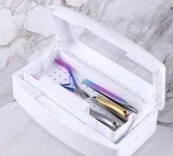 Halten Sie Scheren, Feilen, Kämme und weitere Werkzeuge gründlich sauber. Die Box ist geeignet für Werkzeuge, die die Haut nicht verletzen, und hilft, die Verbreitung von Bakterien zu verhindern.