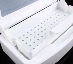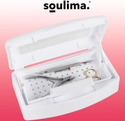 Die Sterilisationsbox SOULIMA ist für die schnelle und effektive Desinfektion von Werkzeugen konzipiert, die die Gewebekontinuität nicht verletzen – von Friseurscheren über Kämme bis hin zu Maniküre-Werkzeugen. Gießen Sie einfach ca. 0,5 l Desinfektionslösung ein, legen Sie die Werkzeuge auf das Sieb, schließen Sie den Deckel und warten Sie die empfohlene Zeit ab. Beim Öffnen fährt das Sieb automatisch heraus und ermöglicht bequemes Abtropfen.