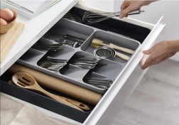 Ordnen Sie Ihre Bestecke und Utensilien effizient dank der verschiedenen Fächer.