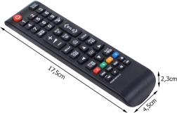 Praktische universelle Fernbedienung für SAMSUNG Fernseher – funktioniert sofort nach dem Einlegen der Batterien, ohne Programmierung. Bietet den vollen Funktionsumfang der Originalfernbedienung, übersichtliche und komfortable Tasten, robuste Ausführung und eine ergonomische Form für den täglichen Gebrauch.