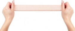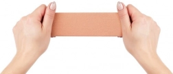 Stücke des Bandes kleben leicht auf trockener Haut ohne Creme, sind unauffällig und leicht mit Kleidung kombinierbar.