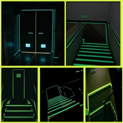 Das phosphoreszierende Band auf Treppen sorgt für Sichtbarkeit in der Dunkelheit, was die Sicherheit erhöht.