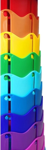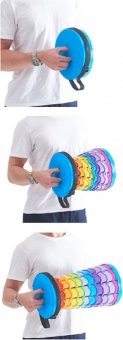 Die Handhabung ist intuitiv: beide Griffe fassen, herausziehen und nach links drehen; zum Zusammenklappen nach rechts drehen und sanft zusammendrücken. Die Höhe ist in 10 Stufen (je ca. 6 cm) verstellbar, sodass er sich sowohl für Kinder als auch für Erwachsene anpassen lässt. Der praktische Schultergurt erleichtert den Transport, und das farbige Design fällt sofort ins Auge.