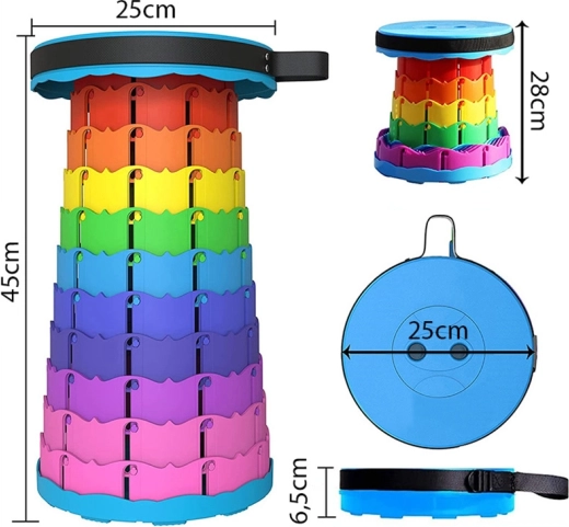 Dieser tragbare Teleskophocker ist der ideale Begleiter unterwegs. Er passt mühelos in Rucksack oder Auto und ist in Sekunden startklar. Dank des robusten Mechanismus verriegelt er sicher in der gewünschten Höhe und bietet überall einen stabilen und bequemen Sitz.