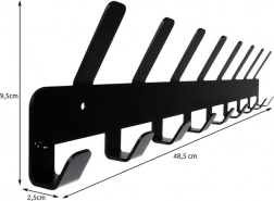 Die Garderobe besteht aus robustem Stahl und ist mit einer Pulverbeschichtung versehen, die vor Korrosion und Kratzern schützt. Geeignet für den Innenbereich und überdachte Eingänge. Die Installation ist einfach – Dübel und Schrauben liegen bei; bohren Sie lediglich mit einem 5-mm-Bohrer und schrauben Sie die Garderobe fest.
