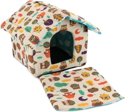 Textilhaus für Hunde und Katzen mit Eulen, Größe L