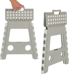 Der Hocker ist im Handumdrehen flach zusammengeklappt und lässt sich dank Griff leicht transportieren. Zusammengefaltet ist er nur 5 cm dünn und passt hinter den Schrank oder in schmale Nischen.