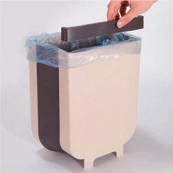 Moderner, kreativer Mülleimer für Schränke mit einer Stärke von 2,2 cm. Kann sowohl in der Küche als auch im Bad oder im Auto verwendet werden. Sehr komfortabel in der Anwendung – zum Entsorgen müssen Sie sich nicht bücken, Sie schieben den Abfall einfach direkt von der Arbeitsplatte in den Eimer. Der Eimer hat ein Volumen von 9 Litern. Hergestellt aus hochwertigem Kunststoff und Silikon. Einfache Bedienung: einfach drücken und herausziehen. Im zusammengeklappten Zustand nimmt der Eimer wenig Platz ein.