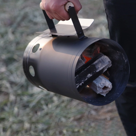 Ein hervorragendes Gerät für einfaches und schnelles Anheizen des Grills. Der Holzgriff ermöglicht ein sicheres Abstellen des aufgeheizten Kamins. Der erhitzte Kamin muss an einem sicheren Ort abgestellt werden, der für Kinder unzugänglich ist und fern von brennbaren Gegenständen. Geeignet zum Grillen.