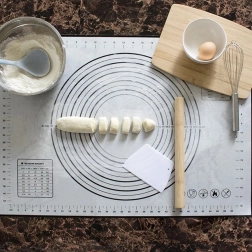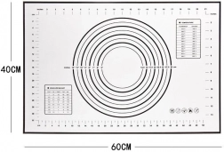 Hochwertige Silikonunterlage mit Maßskala in der Größe 60x40 cm in elegantem Grau. Ein großartiges Zubehör für Ihre Küchenbedürfnisse, langlebig und widerstandsfähig.