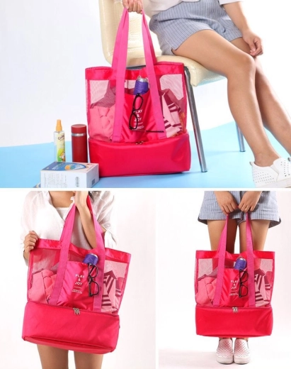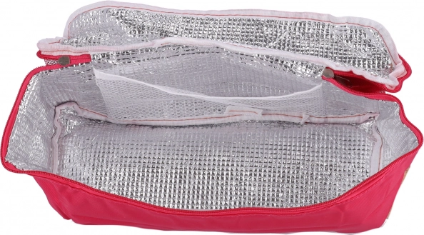Diese rosa Picknicktasche ist der ideale Begleiter für sommerliche Ausflüge in die Berge, ans Meer oder zum Picknick. Sie ermöglicht es Ihnen, bequem eine Lunchbox, eine Thermosflasche, Kunststoffbehälter für Lebensmittel sowie verschiedene Getränke zu verstauen. Sie besteht aus leichtem Material und lässt sich dadurch auf ein kleines Format zusammenfalten.