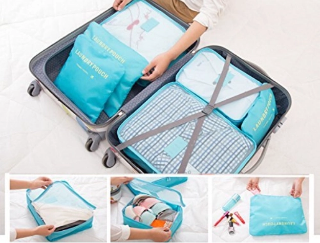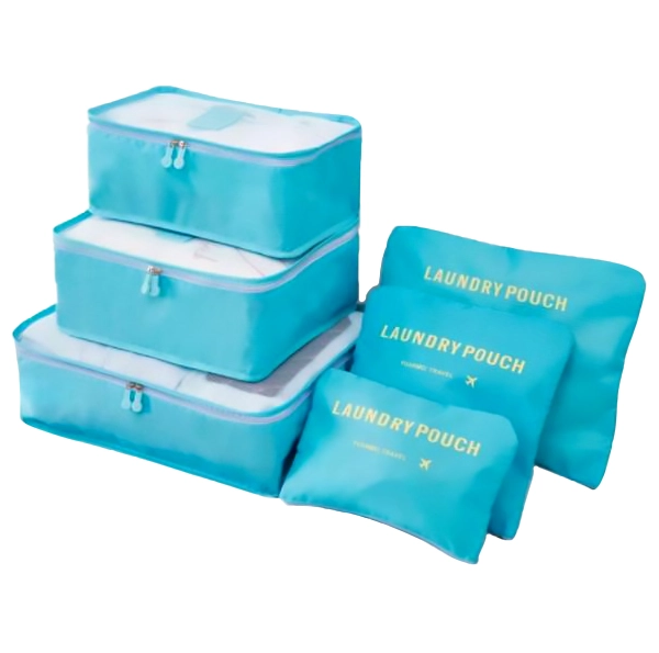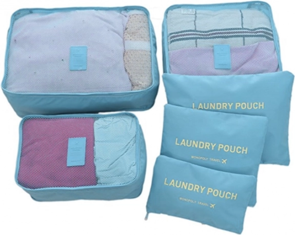 Verschiedene Größen der Würfel und „Laundry Pouch“-Beutel helfen, Hemden, Wäsche, Socken und Schuhe effizient zu trennen und beschleunigen das Packen und Auspacken.