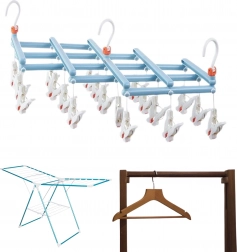Die Klammern verfügen über rutschhemmende Details und eine starke Feder, sodass die Wäsche nicht verrutscht und auch bei Wind hält. Dank des leichten Designs lässt sich der Hänger einfach transportieren und ist auch auf der Hütte oder beim Camping eine gute Wahl.
