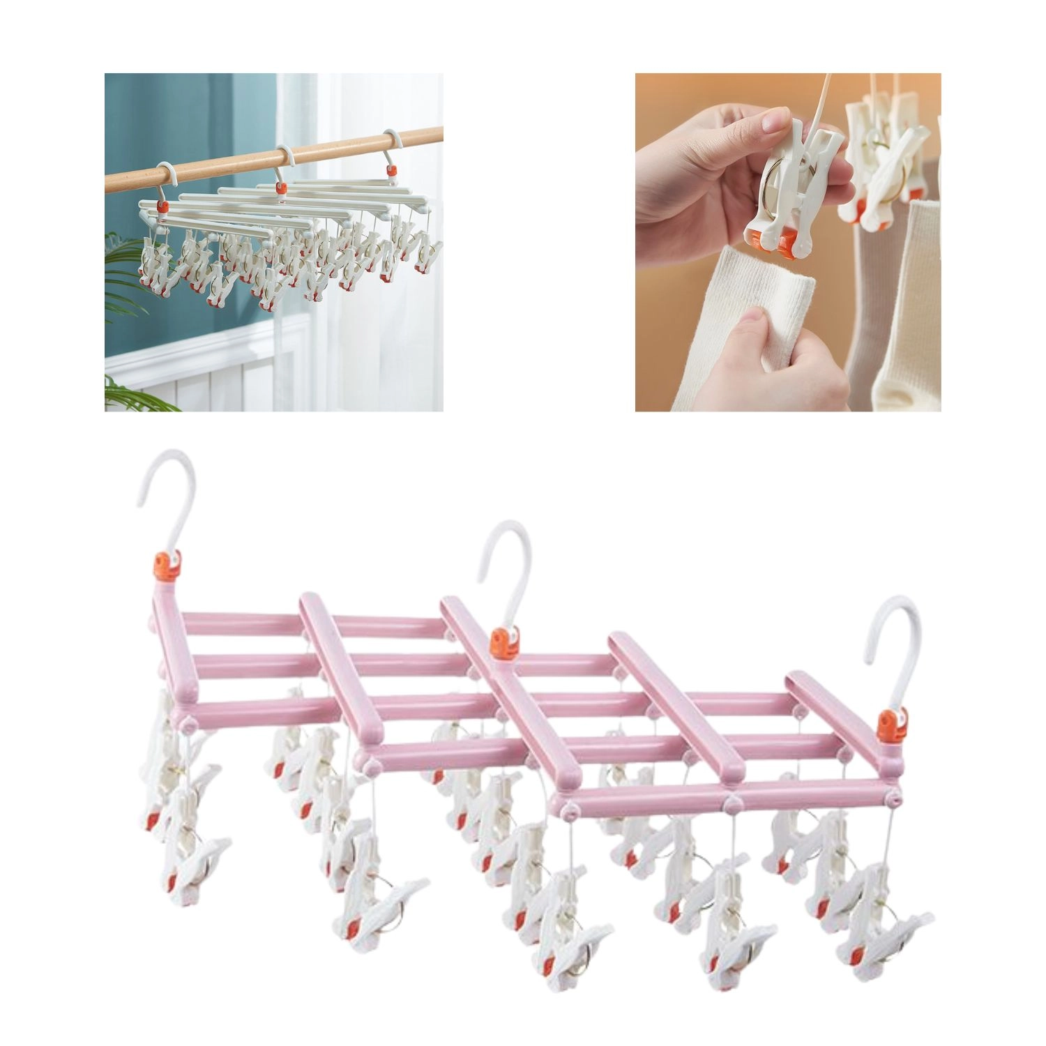 Suchen Sie eine clevere Lösung zum Trocknen von kleiner Wäsche? Dieser kompakte, klappbare Wäscheständer mit 19 Klammern bietet effizientes Trocknen von Socken, Unterwäsche und Kinderkleidung – auf dem Balkon, im Bad, am Wäscheständer oder unterwegs. Dank des drehbaren Hakens mit Verriegelung lässt er sich nahezu überall aufhängen.