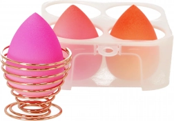 Das Set aus drei Schminkschwämmen plus Halter veredelt und belebt die Oberfläche Ihres Schminktischs! Das Set ist in einer praktischen Box verpackt. Der praktische Halter ermöglicht ein bequemes Aufbewahren und Trocknen des Beauty-Blenders. Der Ständer ist aus Metall in Roségold gefertigt.