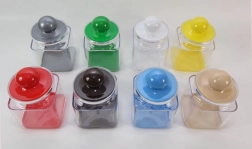 Der Kunststoff-Gewürzbehälter hat einen Deckel mit kugelförmigem Griff, der sich bequem anheben lässt und die Dichtheit gewährleistet.
