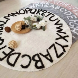 Kontrastreiche Buchstaben entlang des Teppichrandes laden Kinder ganz natürlich zum Entdecken und Üben des Alphabets ein – ideal für gemeinsames Spielen und eigenständige Aktivitäten.