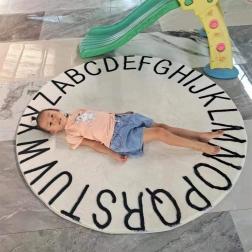 Verleihen Sie dem Kinderzimmer mit dem kuschelweichen runden Teppich einen modernen und eleganten Look, der Kinder mit seinem Alphabet-Druck begeistert. Das neutrale Beige passt sowohl für Mädchen als auch für Jungen und lässt sich leicht mit verschiedenen Einrichtungsstilen kombinieren – vom Spielzimmer über das Schlafzimmer bis hin zum Wohnzimmer.