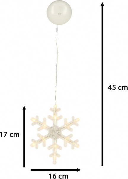 Die stilvolle hängende LED-Dekoration in Form einer Schneeflocke erhellt Ihr Fenster und schafft eine zauberhafte Weihnachtsatmosphäre. Dank des Batteriebetriebs können Sie sie kabellos überall platzieren, und die einfache Befestigung mit Saugnapf sorgt für schnelles Anbringen. Das warmweiße 10-LED-Licht ist ideal für eine gemütliche Winterdekoration im Innenbereich.