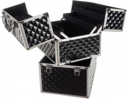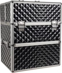 Der XL Schminkkoffer Soulima ist so entworfen, dass er den Bedürfnissen der modernen Frau gerecht wird, die nach einer bequemen und stilvollen Möglichkeit sucht, ihre kosmetischen und persönlichen Bedürfnisse zu organisieren. Er ist aus hochwertigem Kunststoff und Metall gefertigt, die Farben Schwarz und Silber verleihen ihm ein elegantes Aussehen.