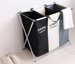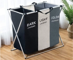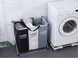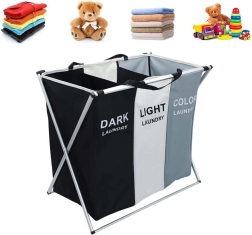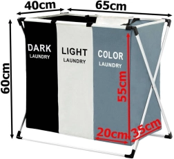 Organisieren Sie Ihre Waschküche mit einem Wäschekorb mit drei getrennten Fächern, die ein einfaches Sortieren der Wäsche nach Farben ermöglichen. Dieser moderne und ästhetische Korb besticht durch einfache Handhabung und eine effiziente Organisation Ihrer Wäsche.