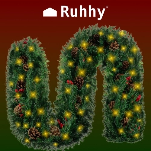 Zaubern Sie eine festliche Dekoration zu Hause mit einer Girlande, die Premium-HQ-Ausführung, dichtes, tiefgrünes Nadelwerk und zarte LED-Beleuchtung vereint. Natürliche Tannenzapfen und rote Beeren machen sie auch ohne weitere Deko zum Blickfang. Dank der formbaren Zweige passt sie sich leicht jedem Platz an – vom Geländer über den Kamin bis zur Eingangstür.