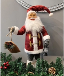 Diese reich verzierte Nikolaus-Weihnachtsdeko fällt sofort ins Auge. Ein roter Mantel mit weißem Pelzbesatz, ein langer weißer Bart und goldene Brille erzeugen den klassischen Look, der untrennbar zu Weihnachten gehört. Der Nikolaus trägt eine Laterne und hat einen Sack voller Geschenke auf dem Rücken – so entsteht im Handumdrehen festliche Stimmung.